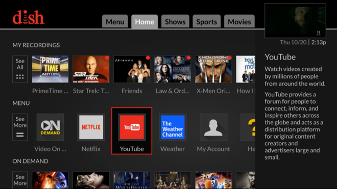 DISH has announced the arrival of the YouTube app on its Hopper 3 DVR. With the launch, DISH is now the first nationwide pay-TV provider in the US to offer YouTube on a set-top box.