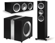 The R series is made of nine speakers - two floorstanding, two bookshelf, two center channels, two surrounds and a 500 watt subwoofer. They all boast a similar black and aluminum style, with the subwoofer in particular embracing the look.