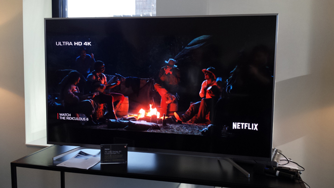 Living up to its on-paper specs, the TV looked rather beautiful in person, displaying a demo package of various Ultra HD Netflix clips -- including footage from 'The Ridiculous 6,' and Marvel's 'Daredevil' and 'Jessica Jones' -- along with a requisite reel of stunning vistas. Unfortunately, like all of the demo material being displayed, the footage was not presented in HDR or wide colors, but, even without pushing these premium features, the picture quality was quite good resulting in pleasing saturation, contrast, and black levels in the viewing environment.