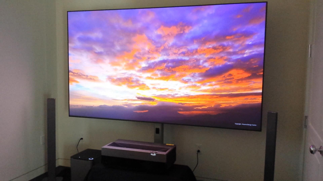 For demo purposes, Hisense had the 100-inch 4K Laser TV set up in its own room where the display took up most of the back wall. With the projector about 13-inches from the screen, the TV played back various clips of hillsides, flowers, and busy cities. While a lot of this material looked fantastic on the massive screen, a few of the clips did exhibit some notable artifacts, including aliasing. Thankfully, these quirks seemed to be inherent to the source and not the projector itself. Again, it should be noted that the material was not presented in HDR and though the window was covered to some extent, there was still a fair amount of ambient light in the room, making it hard to fully judge the picture quality.