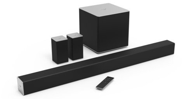 VIZIO SB4051-C0 40-Inch 5.1 Channel Sound Bar with Wireless Subwoofer: $253. VIZIO's flagship 40" 5.1 Soundbar features a metallic surface and is designed for TVs that are 47-inches or larger. The device includes a 3-channel soundbar, wireless subwoofer, and two rear satellite speakers to output a Sound Pressure Level at 102 dB with less than 1% total harmonic distortion. In addition, Bluetooth with aptX support is integrated, along with HDMI connectivity. Dolby Digital and DTS Digital surround sound tech are included as well.